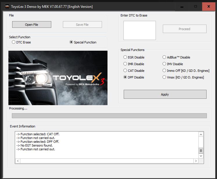 – DieselParticulate Filter [DPF] disable function for all Denso Generations ECUs.
